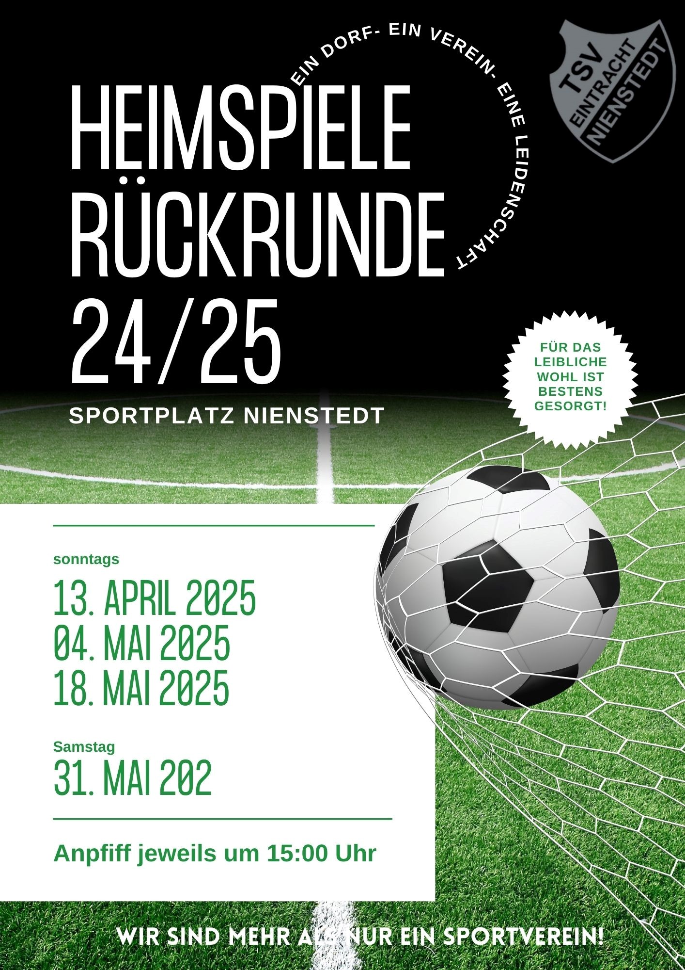 Heimspiele Rückrunde Saison 2024/2025, jeweils um 15 Uhr